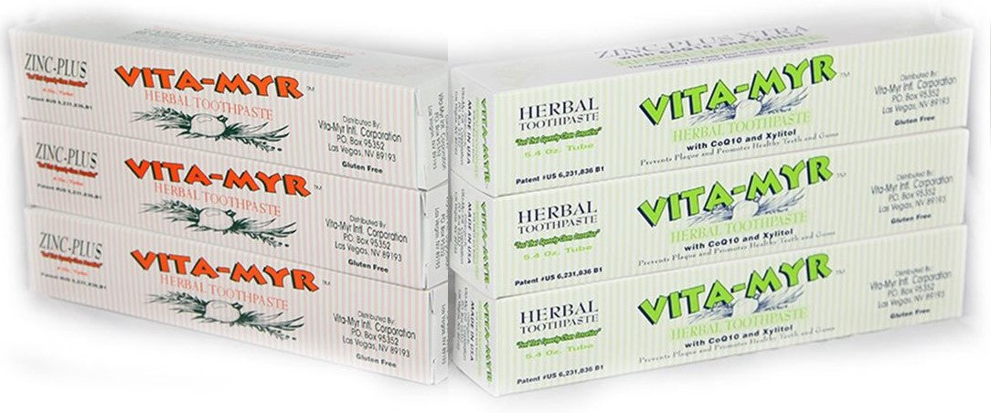 Vita-Myr Family Pack Toothpaste - 3 x 5.4 oz. Zinc-Plus XTRA & 3 x 4 oz. Original Zinc Toothpaste Your Dental Solution