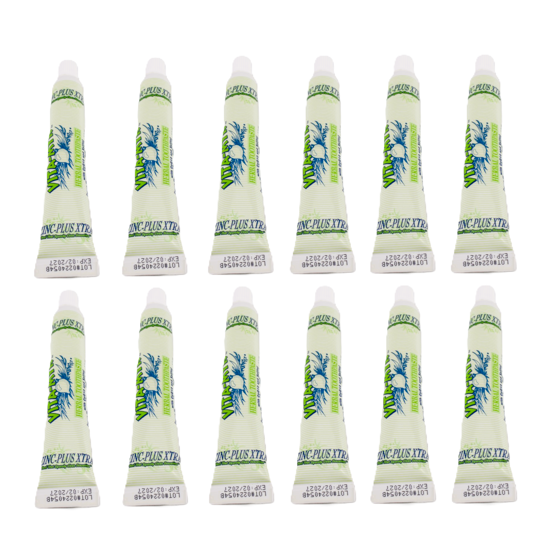 Elevate your oral care routine on the go with the Vita-Myr On-The-Go Dental Care Bundle – a 12-Pack of Travel-Size Zinc-Plus XTRA Toothpaste.