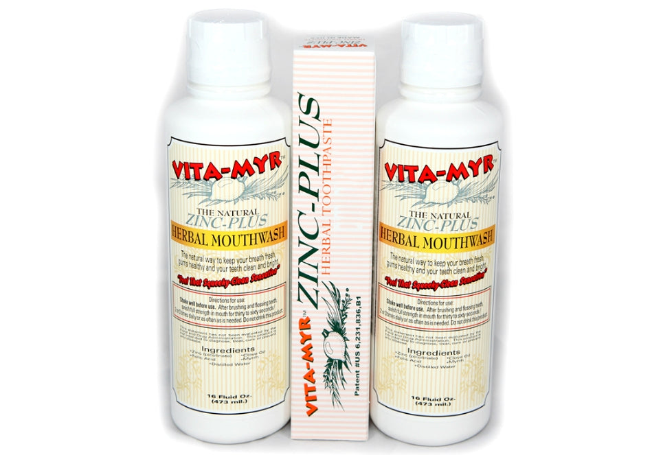 Vitamyr Family Package # 2B with 1 ea 4 oz. Vitamyr Original Toothpaste & 2 ea 16 OZ Vitamyr Natural Mouthwash.